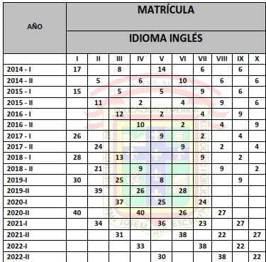 MATRÍCULA DEL 2014-I AL 2022-II